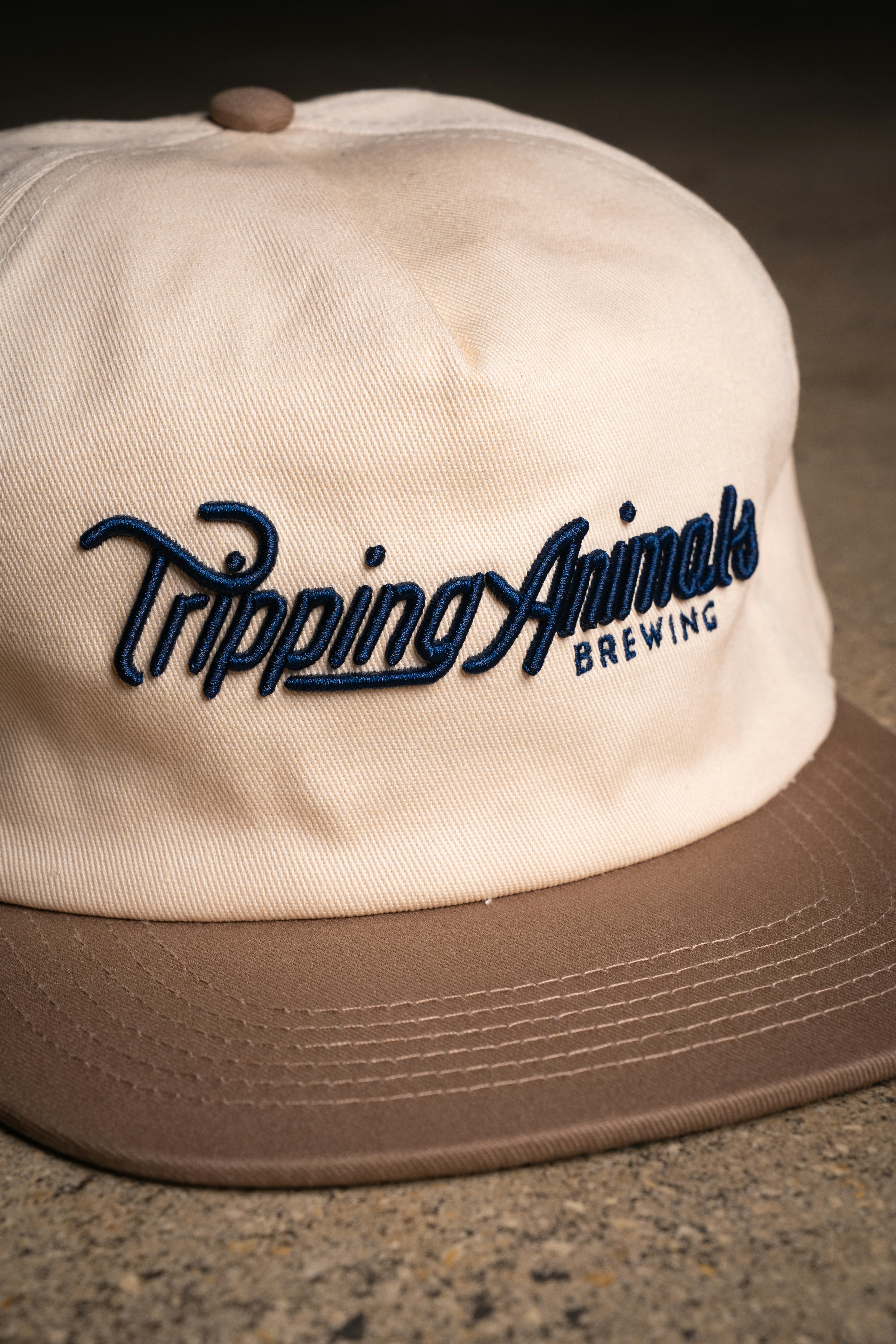 Tripping Animals classic logo on a low-profile cream hat.